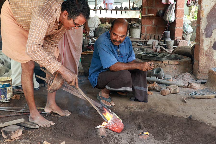 Step into the world of bronze sculpting, an age-old tradition preserved by a handful of skilled artisans in Kerala. As part of Ekathra’s Cultural Heritage experience, this immersive journey introduces you to the master craftsmen who have dedicated their lives to this intricate art.